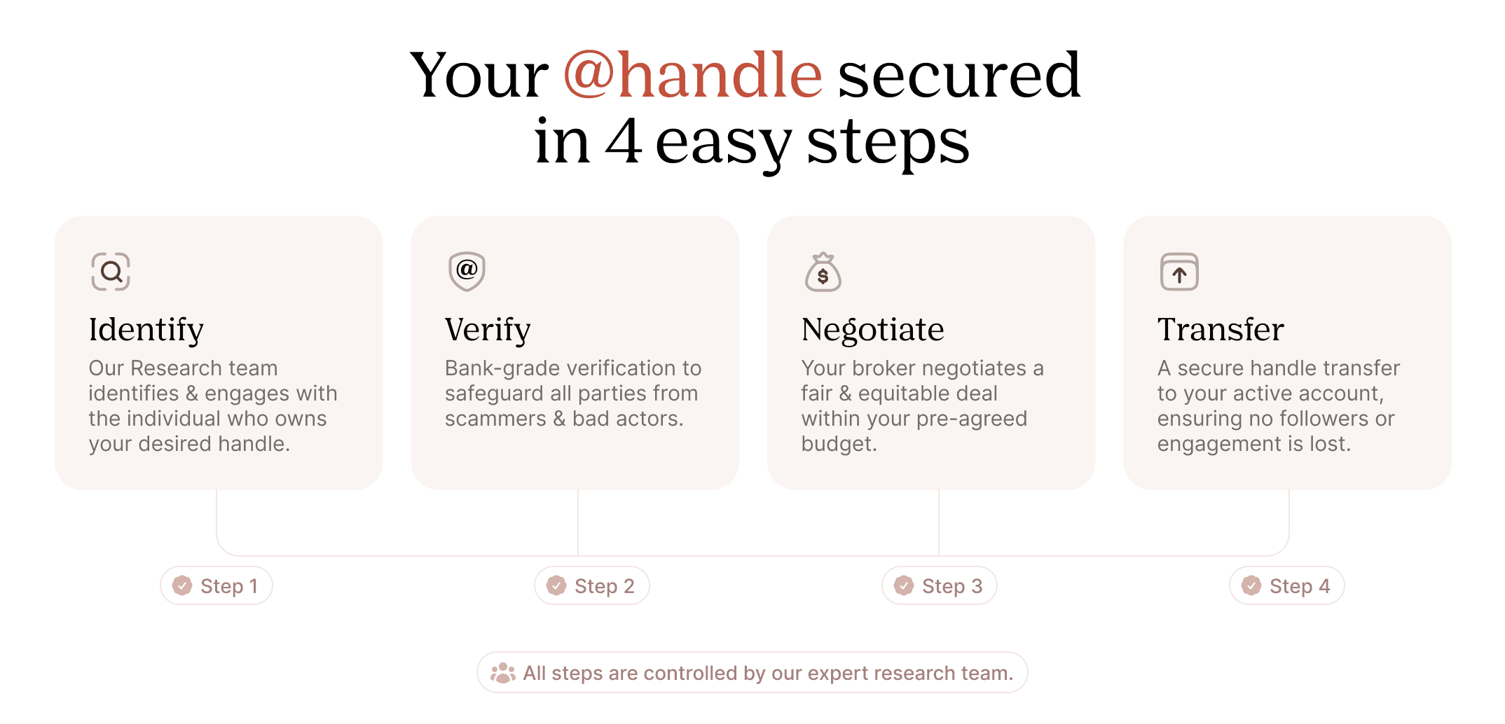 Negotiating for a username can be frustrating. Some owners don’t respond, while others ask for unreasonable compensation. A broker (like handles.ai) handles the process for you, making sure everything is done securely and efficiently by: