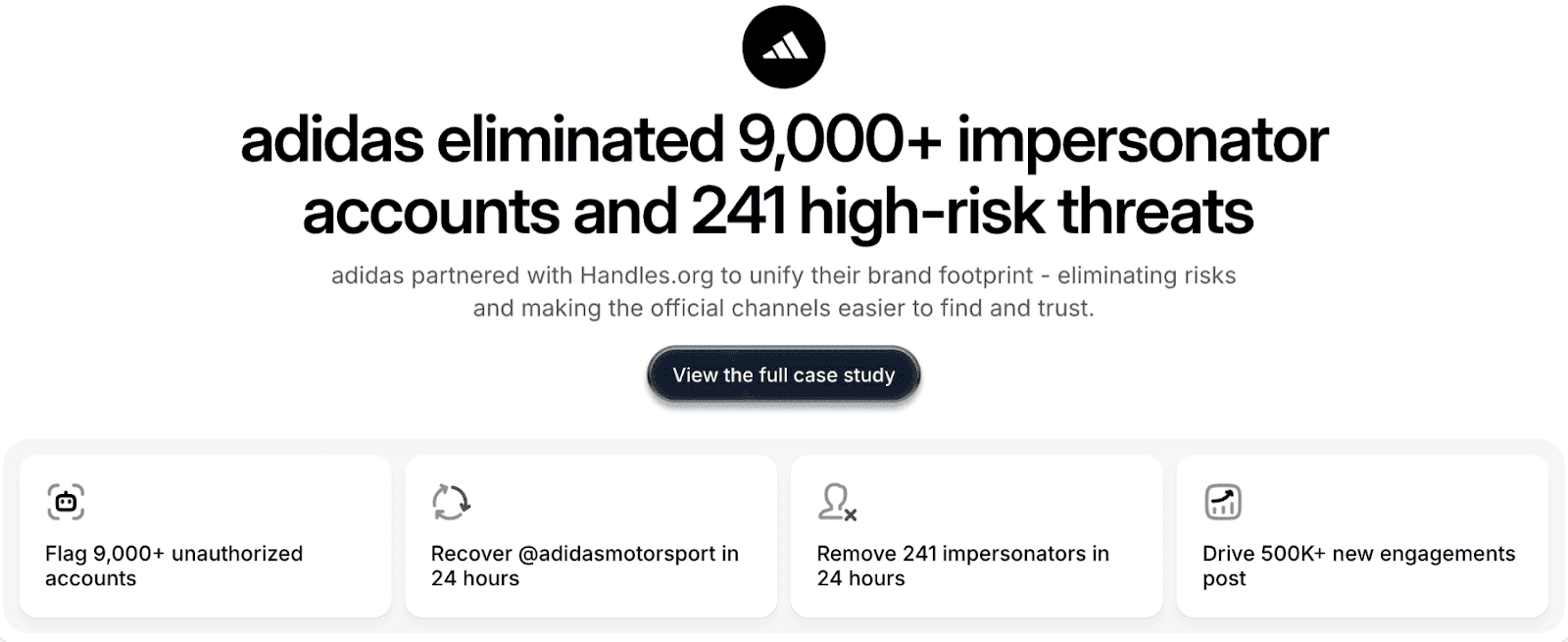 At handles.org, we've helped major brands like Adidas, Framer, and Cohere secure their social media infrastructure. We've audited thousands of accounts, eliminated over 9,000 impersonators for a single client, and built governance systems that prevent security incidents before they happen.